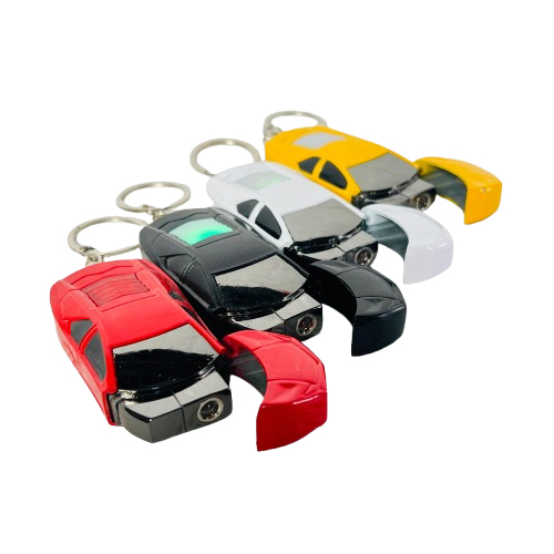 This pocket-sized, high-flame refillable lighter combines style and functionality, shaped like a sleek Lambogini car with a matte hybrid metal-plastic finish. Featuring a fixed keyholder that securely holds 5+ keys and a single-setting flashlight clicker, it’s perfect for on-the-go convenience.
